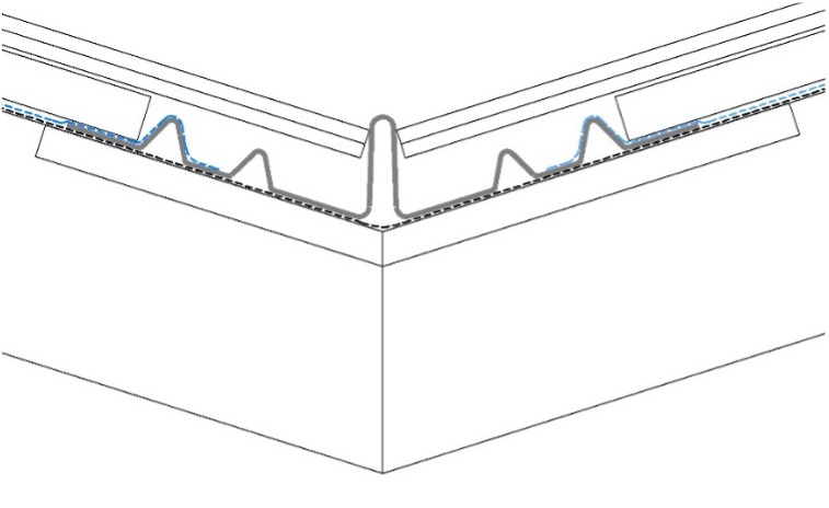 5. Install the roofing membrane overlapping the dry valley & mitre cut battens to the outer water bar of the valley and fix them to rafters/noggins.